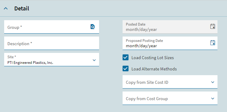 In costing work bench, In a new group, you copy from one Cost Site ID: