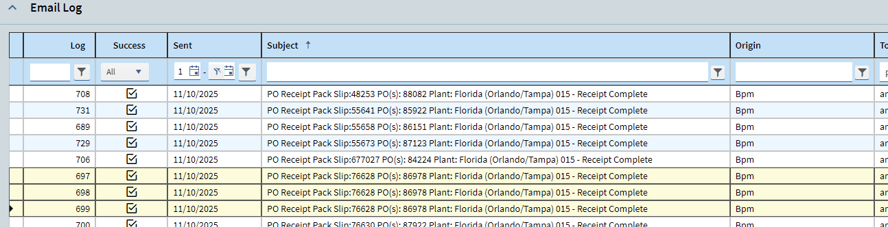 We have emails being send out via data directive on RcvHead so that when something gets received the buyer and/or part manager (UD Field in our company) can get emails notifying them if they have that selected (another UD field(s) to control that). That all works fine except for one weird quirk that I can’t figure out.