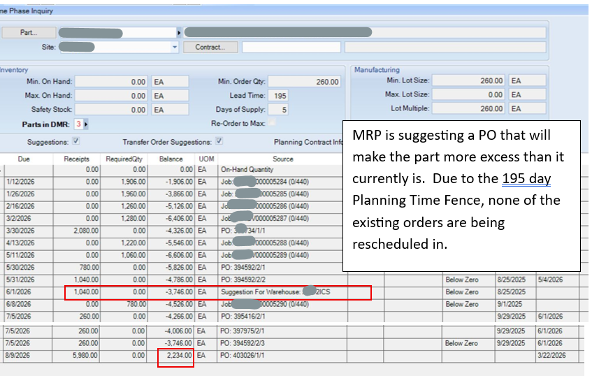 I need help please. I’m trying to figure out why Epicor is suggesting a PO in the middle of where we are negative, when none of it is actually needed. Placing this PO would create excess - AND the PO suggestion is still months after we go negative. I’m new to the company and IT can’t figure it out and said it’s possibly a bug.