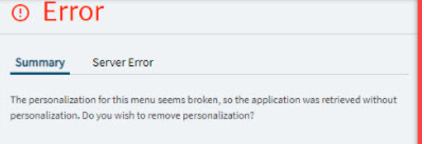 For others’ sake, this is allegedly what the error will look like (you click “Yes” to remove the bad personalization):