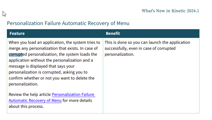 It seems like Kinetic has these little bugs that Epicor support have just come to accept. I am working with a new customer and I have run into this issue with Personalizations and not being able to use an Epicor solution to resolve it. Hannah’s solution has come to the rescue now a few times for me.