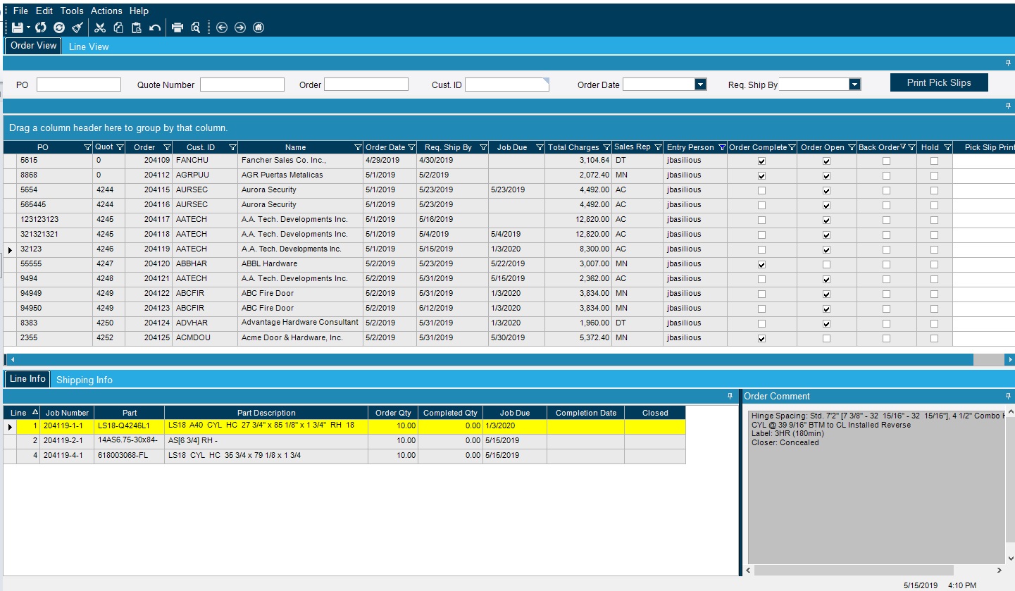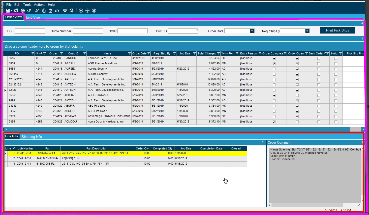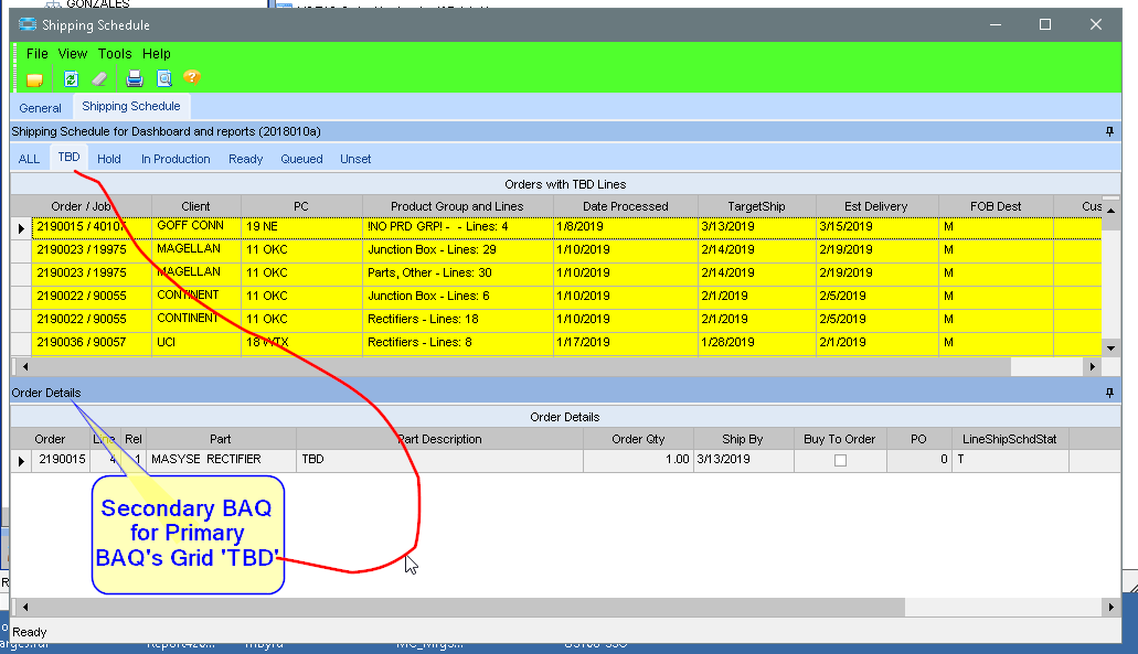 Both tabs at the top are separate BAQ’s, and the two tabs at the bottom, line info and shipping info are also separate BAQ’s. i want to make the entire lower section only visible when looking at the primary Order View Tab.