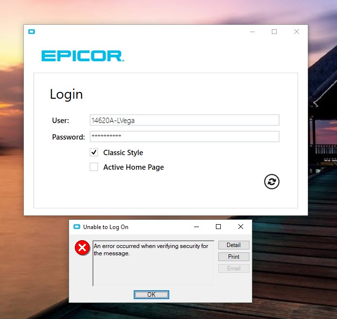 I just installed a new Epicor on a new computer, as one of my users try to sig in, the following error appears:
