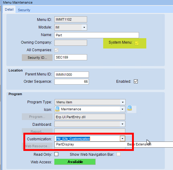 System Menu Item (Product Group) in 10.2.300, when the customization was assigned in 10.1.400