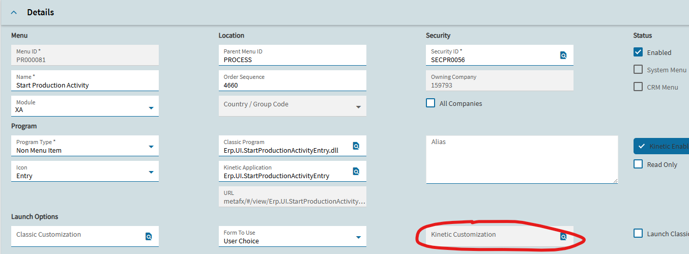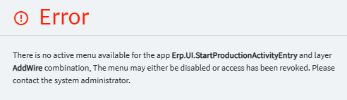 After this weekend’s production update I’m getting an error stating "There is no active menu available for the app Erp.UI.StartProductionActivtyEntry and Layer AddWire combination. This worked prior to the update and layer appears to be fine and published.