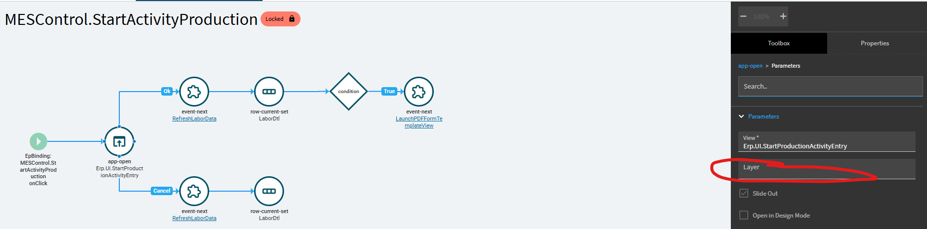 Do you have a separate event that overrides startactivityproduction? That’s where the layer would have been set.