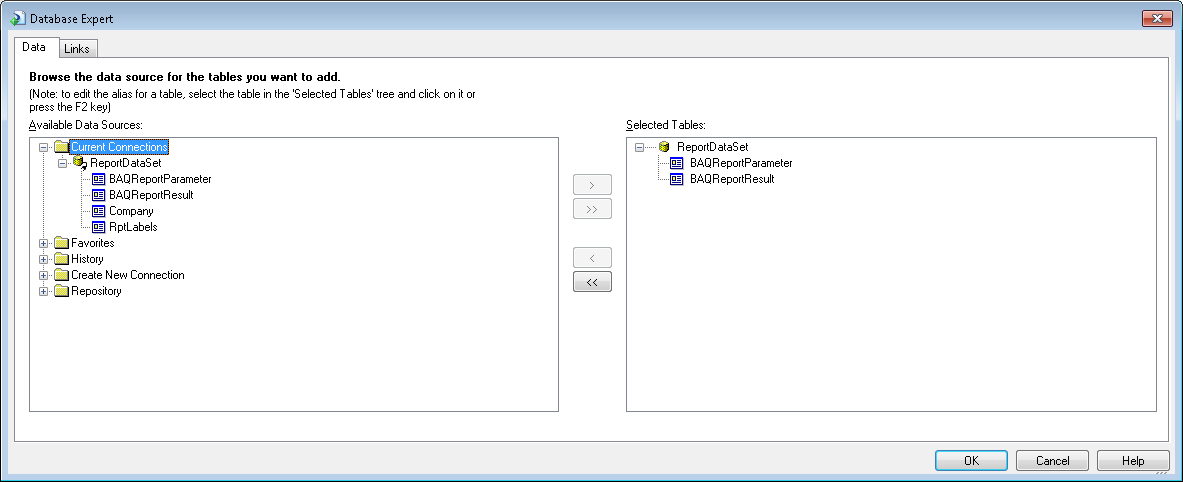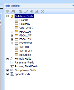 Strange, OrderRel is not an active table? OK, in Crystal, preview the data (F5)/open the XML sample. Once it’s open, in Crystal, on the menu, go to Database and then choose Database Expert. On the left side under Current connections if you see the OrderRel table, add it. It may/should ask you to link the new table with a relationship, go ahead and do so… OrderRel should join fine with InvcDtl already in your dataset above. Once you get it added in Crystal, your fields will be under the OrderRel table prefixed with “OrderNum_”.