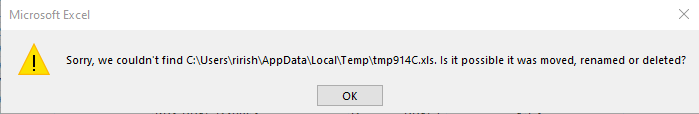 If another excel doc is open, it errors out saying that if can’t find a temp file.