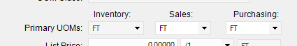 We have a UOM Class for tape that is EA to FT and for this kind of issue the FT to EA is 1 to 1. Then the sales and purchase UOM are EA. It is ugly, but they don’t want to lose the part number and it was wrong for a long time before they noticed or cared.