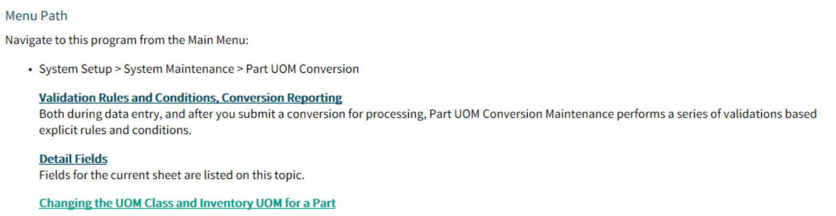 Do a search in the Kinetic UI help for “Running the Part UOM Conversion Process” there is an impressive guide and detail on how to use it.