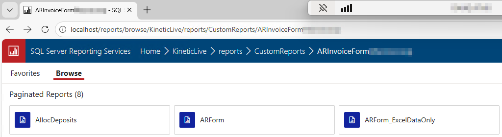Well, this is a weird one. On 2024.2. One of our companies with a custom report style for ARForm (AR invoice) has been unable to print/preview their AR invoices since Monday morning. It shows up in the history in System Monitor with an error: “The item ‘/KineticLive/Reports/CustomReports/ARInvoiceForm[Redacted]/ARForm’ cannot be found”