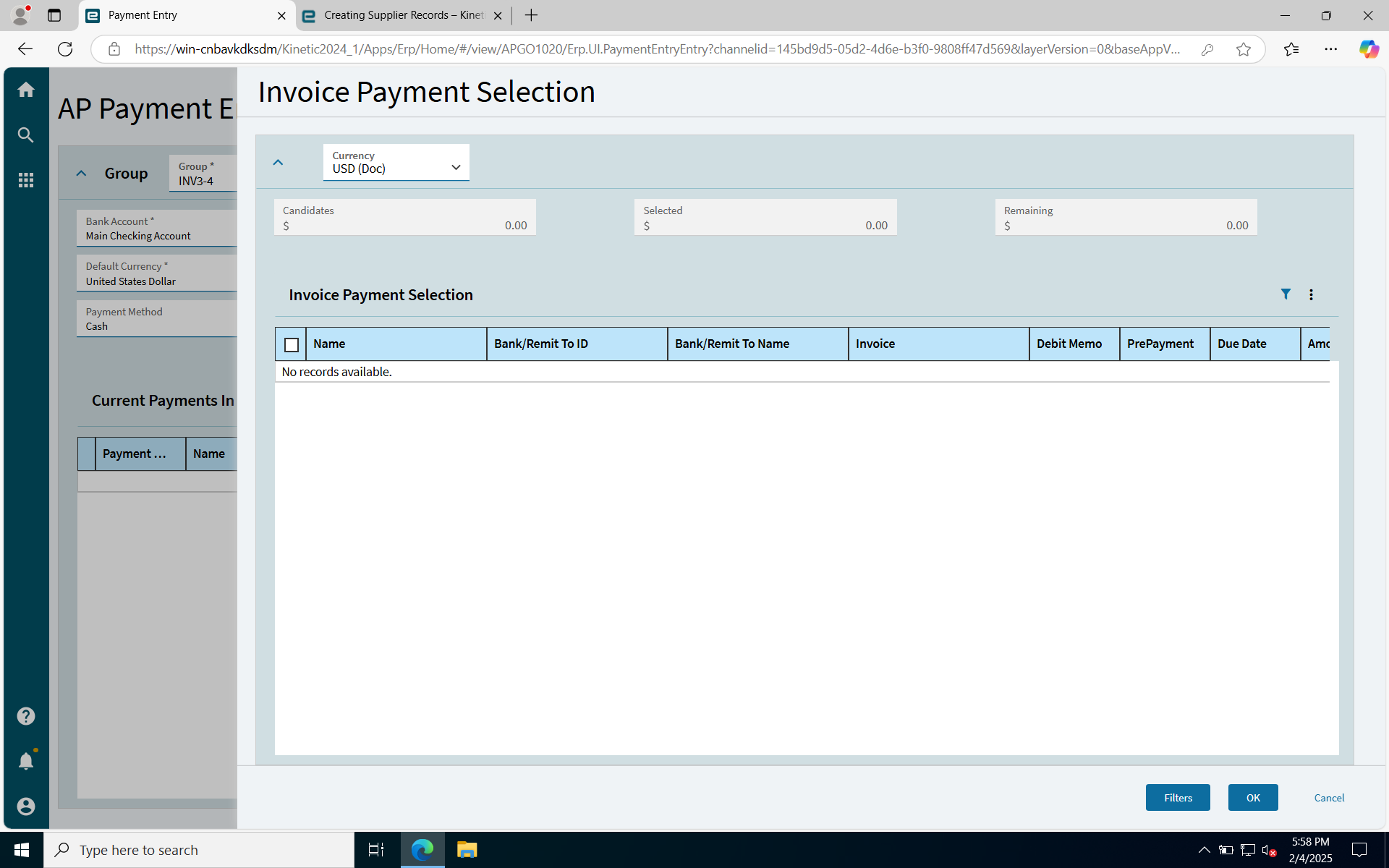 i have created and posted 2 Ap invoices but can’t find it on the payment selection? @Hally