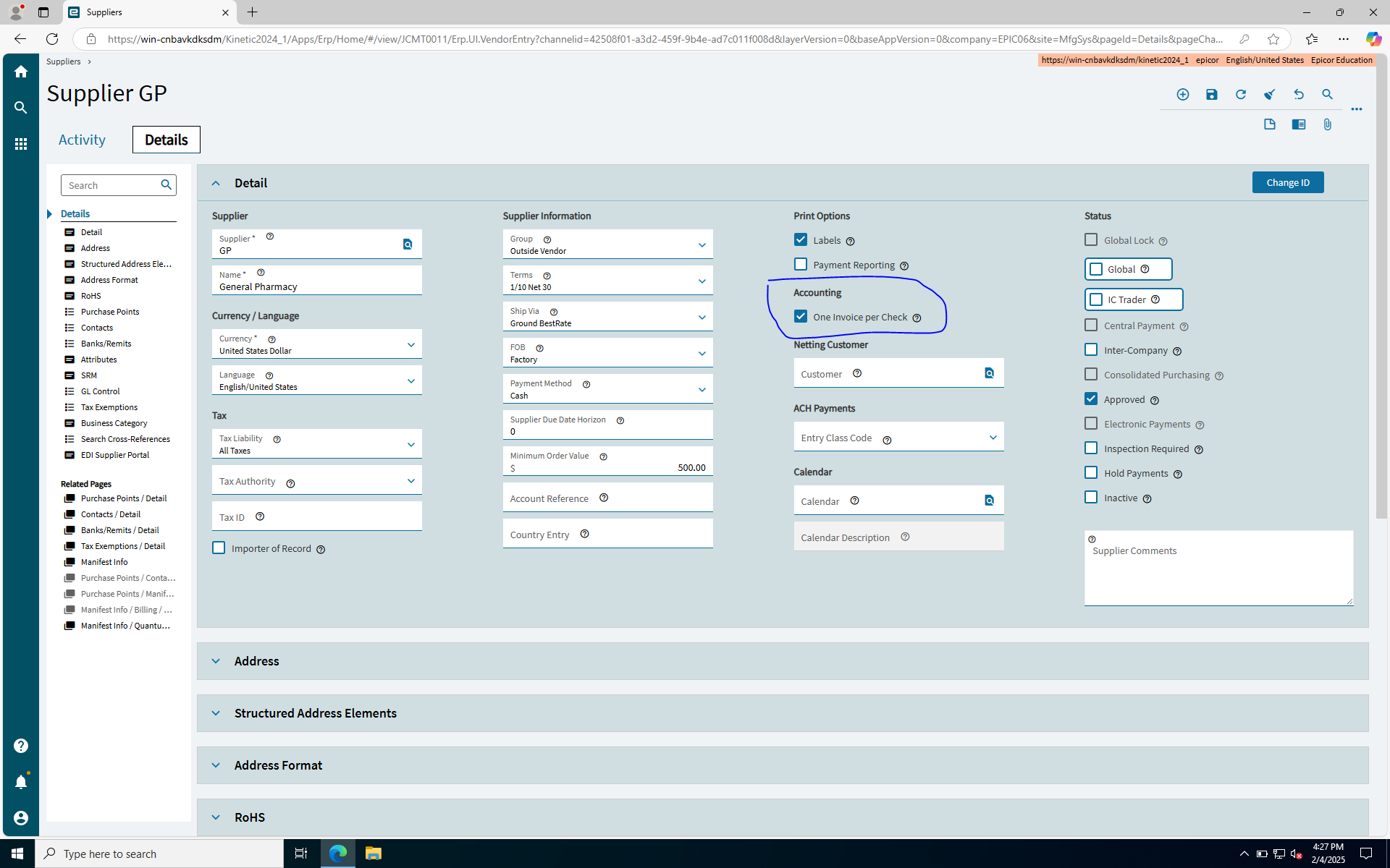 I am confused how “One invoice per customer” checkbox is used. I created two invoices for the same supplier and then posted them both through a single payment entry, surprisingly it didn’t prevent me from posting. According to the article i referred it says that we can only post one invoice per each check.