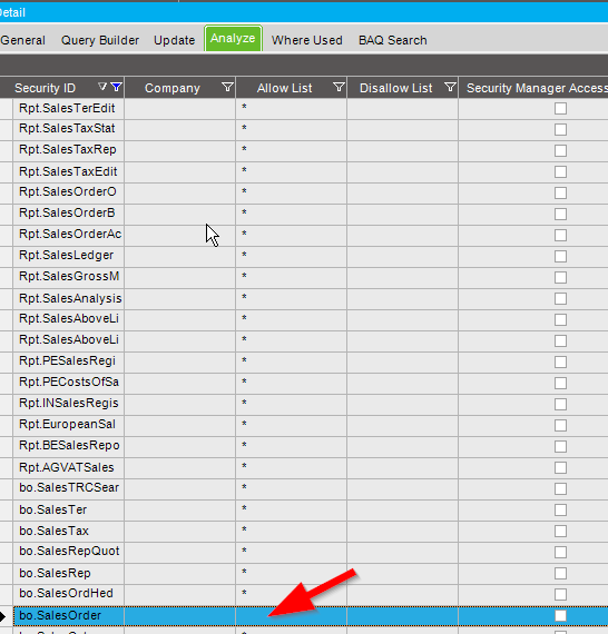 So I notice that the SalesOrder BO doesn’t have an asterisk in the allow list. That’s the only difference that I can see.