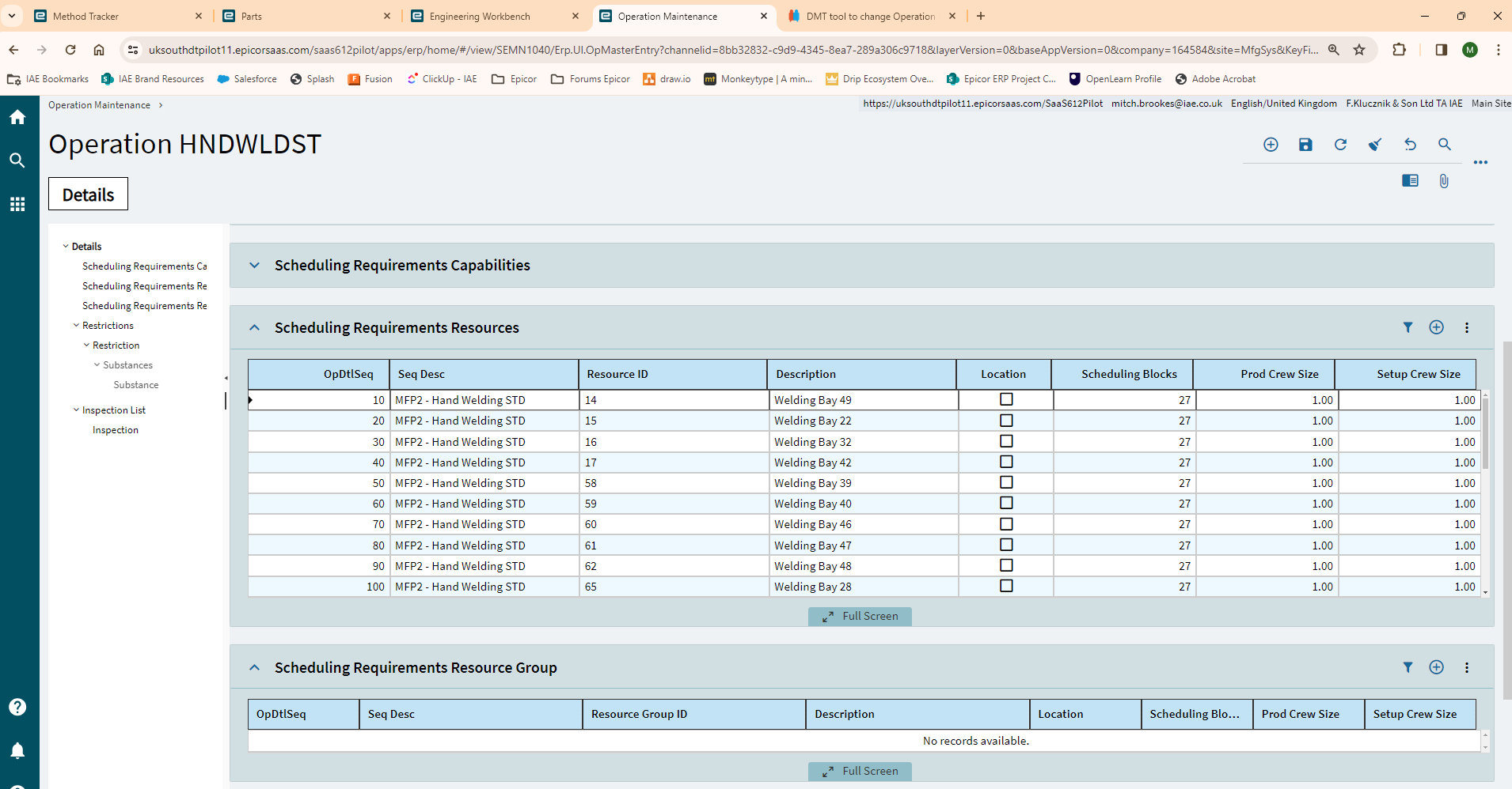 | ECOGroupID | Company | Plant | PartNum | RevisionNum | OprSeq | OpCode | OpDesc | ProdStandard | StdFormat | EstSetHours | AutoReceive | FinalOpr | ECOOpDtl#OpDtlSeq | ECOOpDtl#ResourceGrpID | ECOOpDtl#ResourceID | ECOOpDtl#Company | ECOOpDtl#GroupID | ECOOpDtl#PartNum | ECOOpDtl#RevisionNum | ECOOpDtl#OprSeq | ECOOpDtl#CapabilityID | Machines |