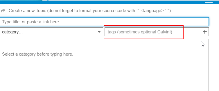 I tried posting (to the E10 Topic), without setting a tag and got: