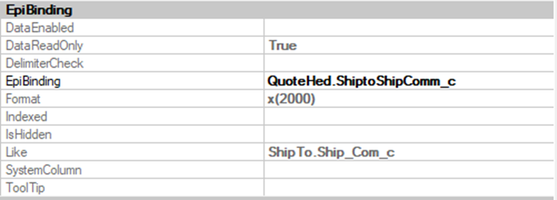 Hoping someone here can help or at least shed some light as to why setting up a Custom Column Like in DataTools works matching a QuoteHed.UD_Field to ShipTo.UD _Field works in Opportunity / Quote Entry but Not in Order Entry matching OrderHed.UD_Field to ShipTo.UD_Field.