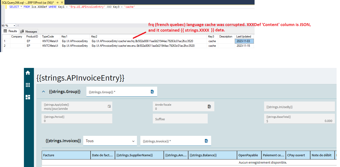 Okay @vingeance@spaceage@Stevensi1018 , I updated my sysconfig, recycled the app pool, and ran conversion 191 as well after that and now I don’t have the {{Strings}} issue when I follow the replication steps I posted. BUT I still get a business error on the two other forms I open. PLease note that I have english set as a language for everyone as well- which I think setting a language is necessary to avoid the {{strings}} issue as @spaceage pointed out.