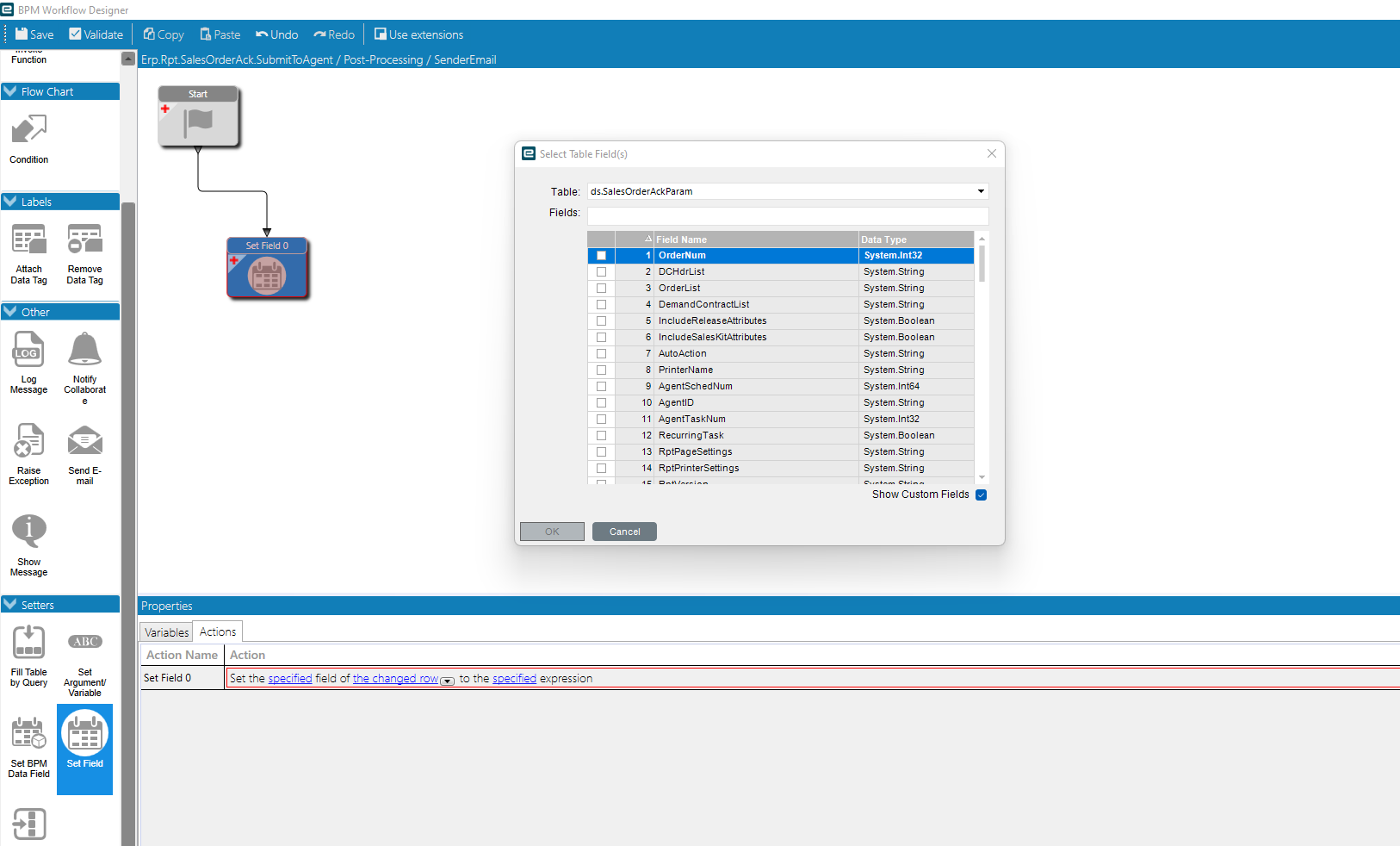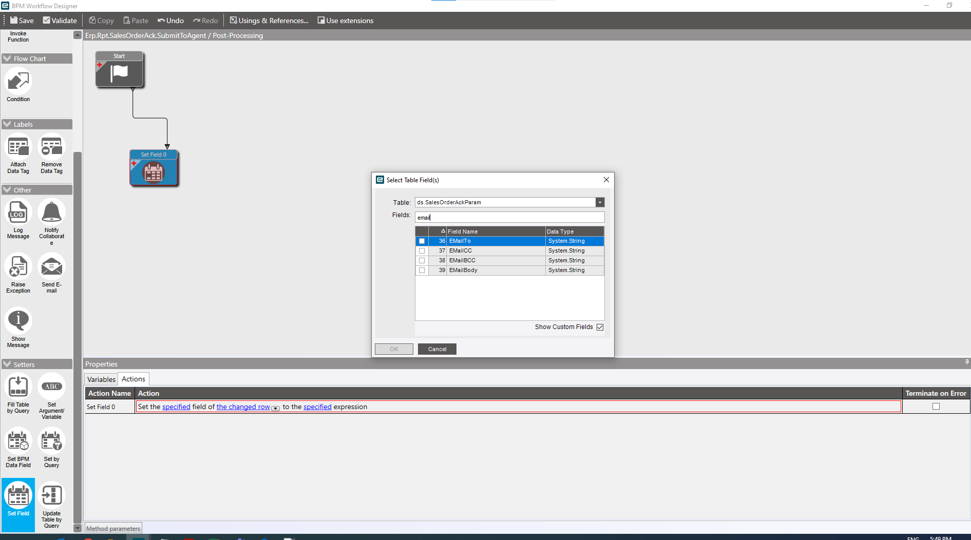 Does the design of the BPM only need to include a set field? What table field would need to be used for this specific action from below?