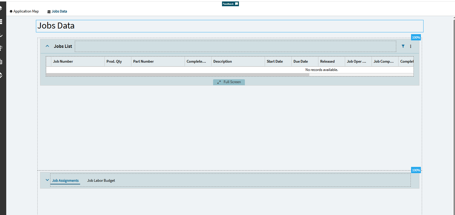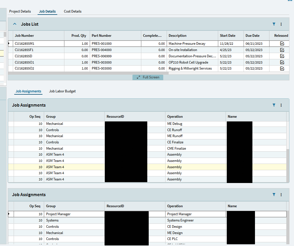 Here is the Jobs data page in design - you see a jobs list grid and the a panel card stack with Job Assignments and Job Labor Budgets (two panel card grids in a panel card stack)