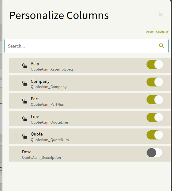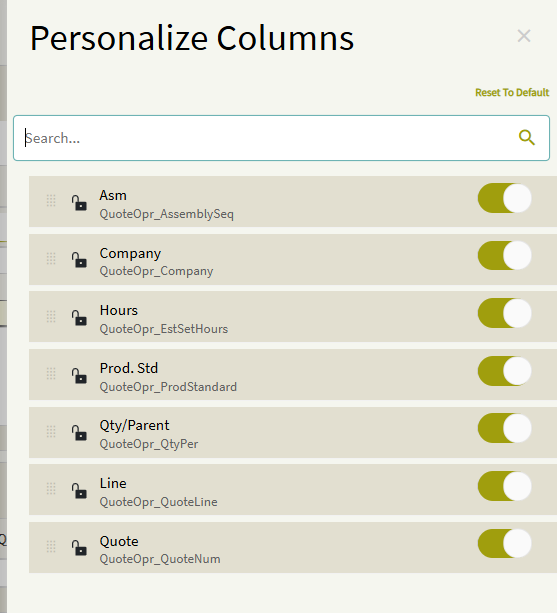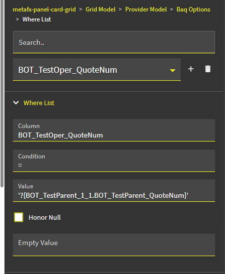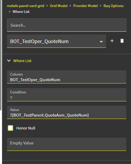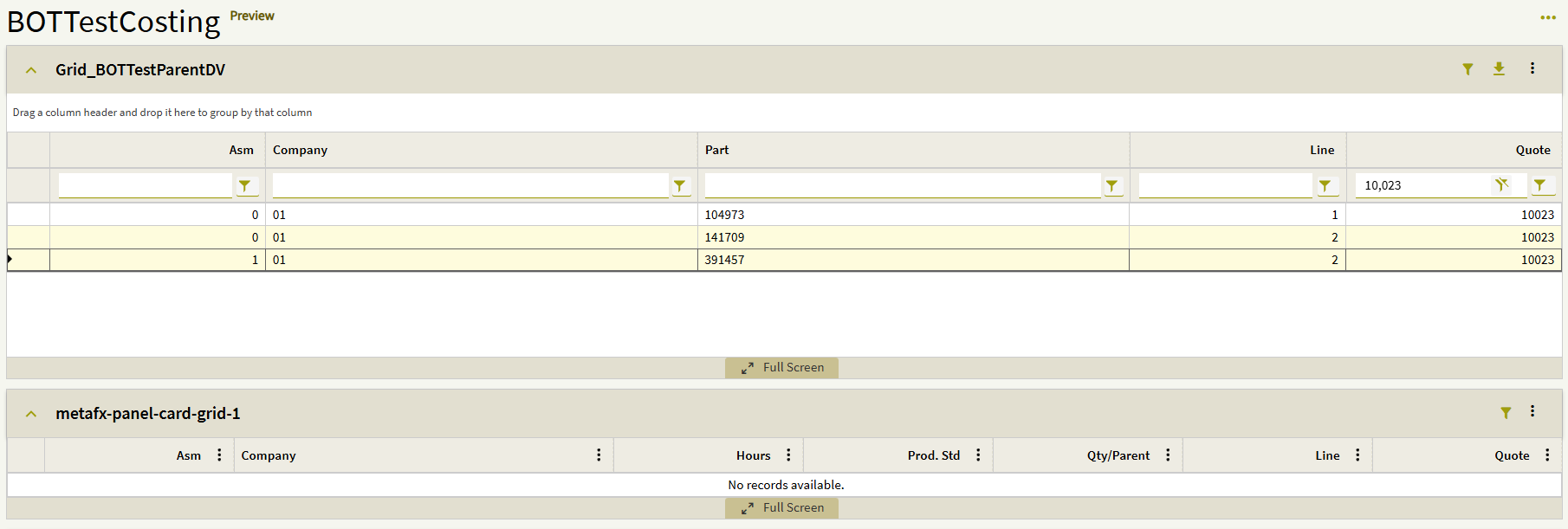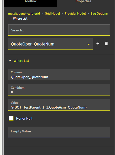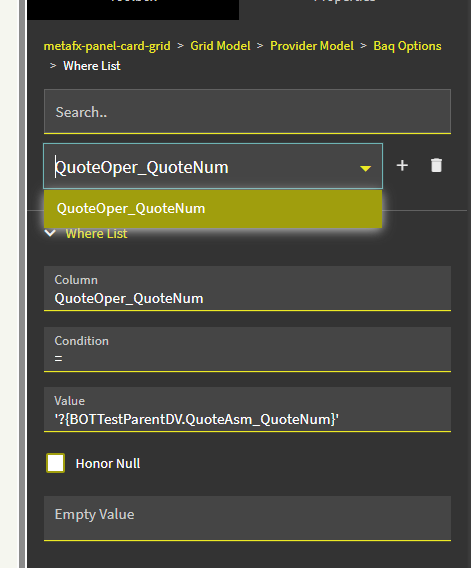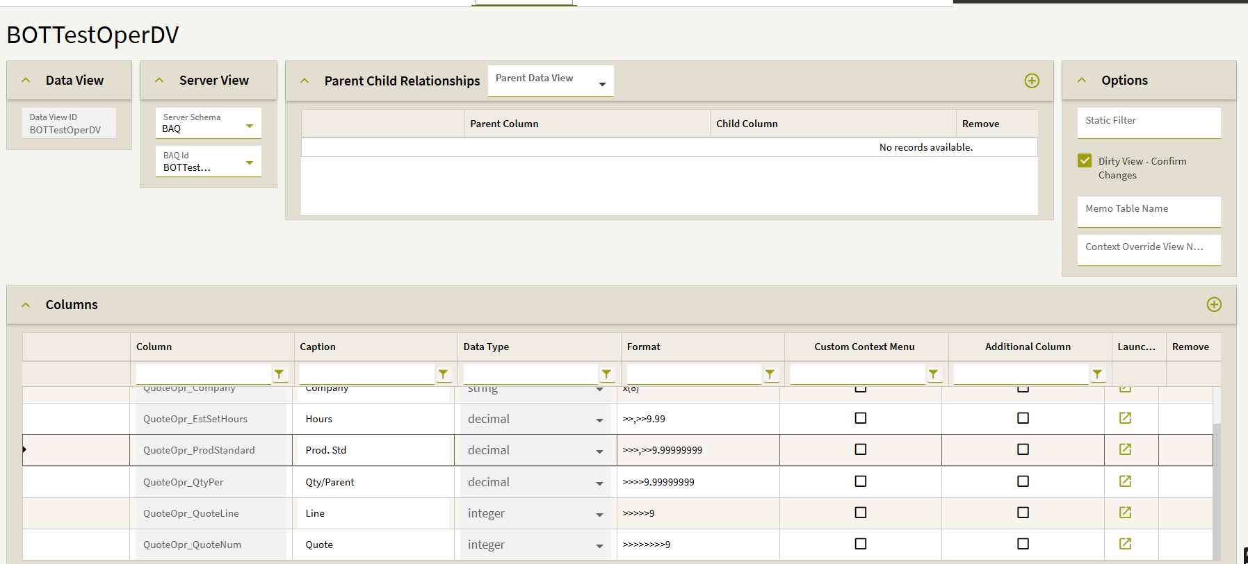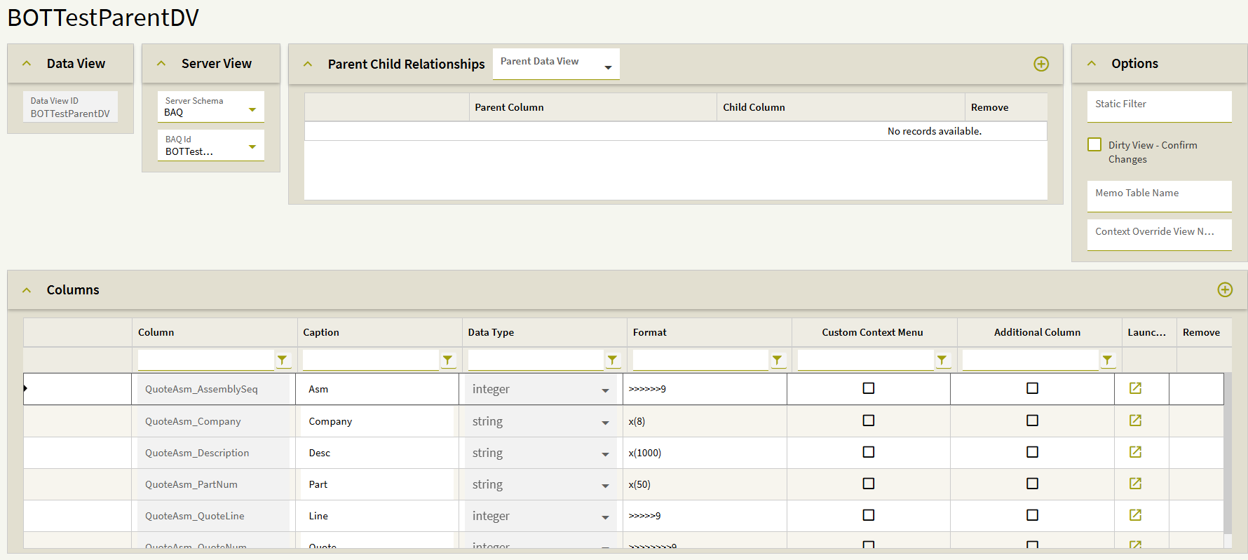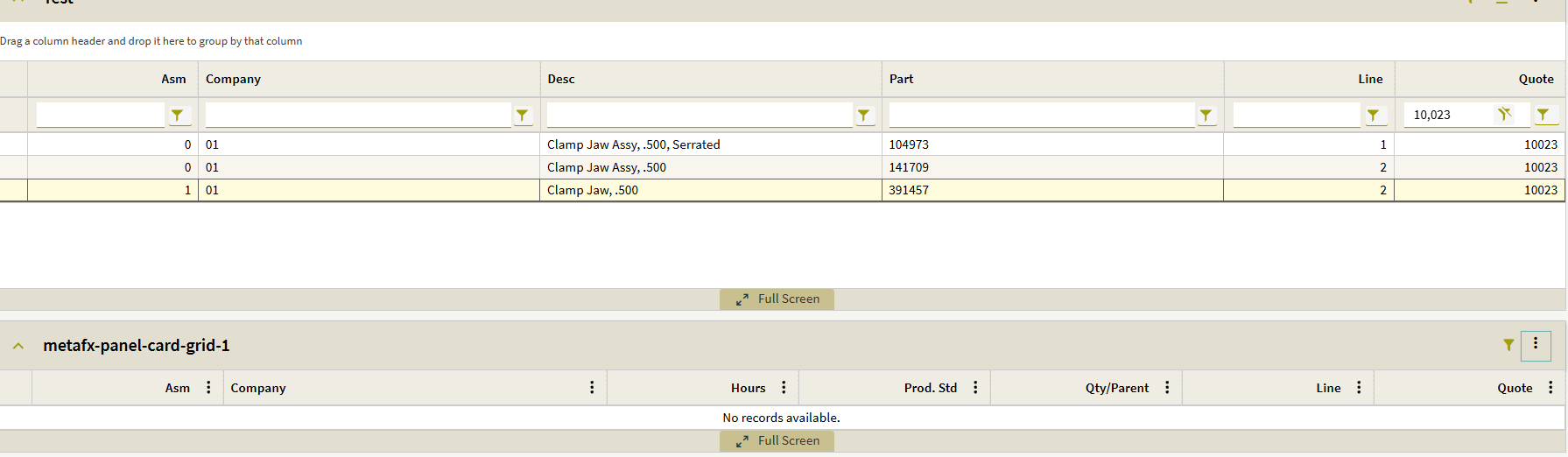 Here is a screenshot showing the relationship between QuoteAsm and QuoteOper (Company is also included, but I couldn’t fit all four columns in the screenshot):
