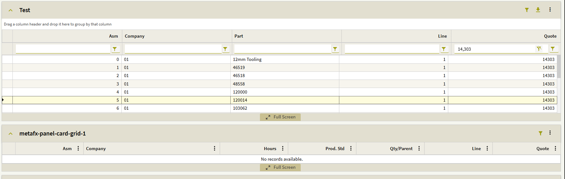 However, when I try a newer quote (one that has been engineered and contains assemblies and materials), the child views do not populate: