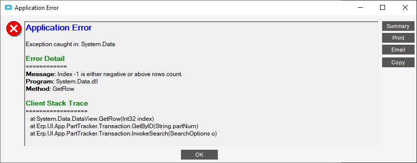 I found yesterday while doing other things to the Part Tracker that this code works just fine on Part Entry, but errors on Part Tracker.