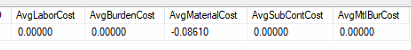 AvgBurdenCost, AvgLaborCost, AvgMaterialCost, AvgMtlBurCost and AvgSubContCost