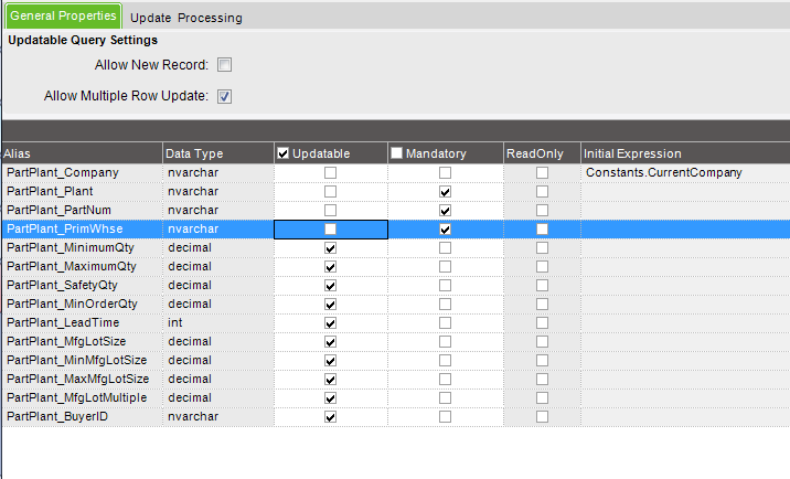 I am trying to create an updateable dashboard so that specific users can easily update part plant configs.