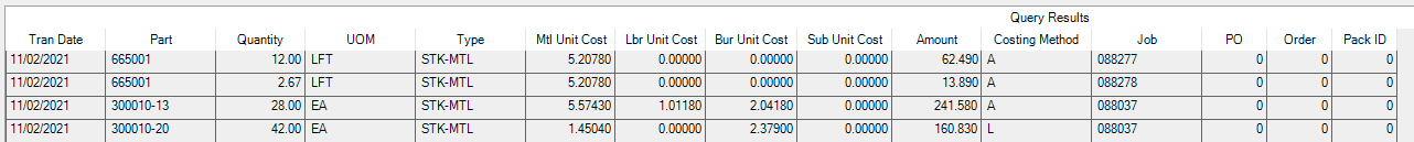 I’m much better at DMT and UD tables than I am SQL. I create a BAQ in E9 for the PartTran table just going back for 1 year to start. I’ve settled on 15 columns That have what I think anyone will want. I’ve added a screenshot:
