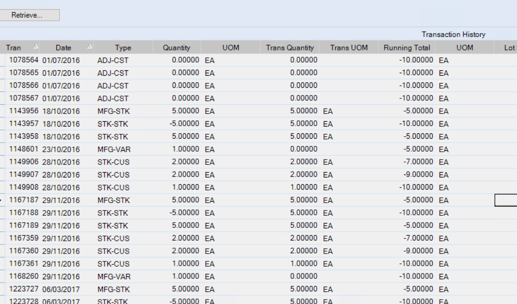 The Part transaction history tracker in our LIVE database is not showing accurate information. Interestingly TEST is fine. Is there a conversion to run that will fix it?