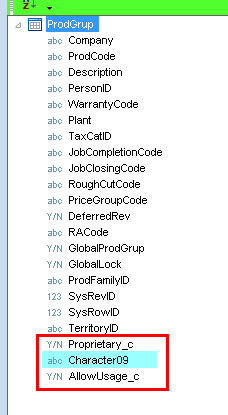 Here’s the BAQ designer with a table I’ve added UD fileds to. The three UD fields are at the end of the list. Two have the _c suffix, and one looks like an old V8 user field