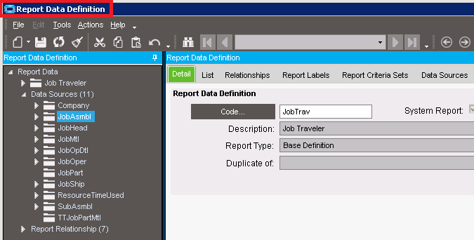 Also, What in the Job Traveler are relating the Part table to? The part the Job makes, or a part that is a component of the job? Nerly every datasource in the RDD has PartNum as a field.