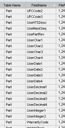 Some user fields in tables from prior to E10, were automatically carried forward. For example, the Part table had many user fields Character01-20, Number01-20, etc…) in V8. But only a few were “built-in” in E10.