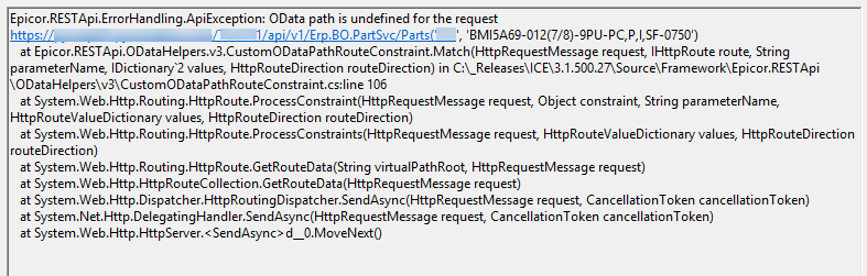 Im reviewing our epicor application logs and have noticed something. In one of our programs we are searching for a part number, but some of our part numbers contain parentheses. The log says OData path is undefined. Can REST handle parentheses, comma’s, and slashes? Any ideas on how I can resolve this issue? Do I need to use encoding or something?