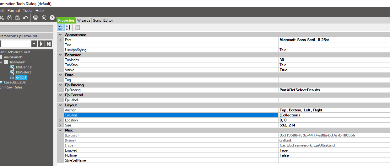 In developer mode, I see that the binding of the grid is “PartXRef Selected Results.”
