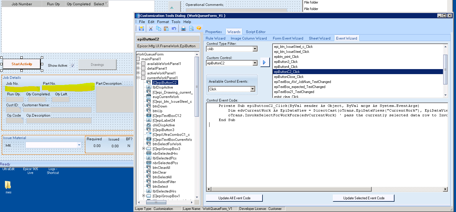 I would like to know if it’s possible to have a customization on the start activity button in MES that will pass the job number in to a excel worksheet. Then once end activity button is click the excel file is deleted.