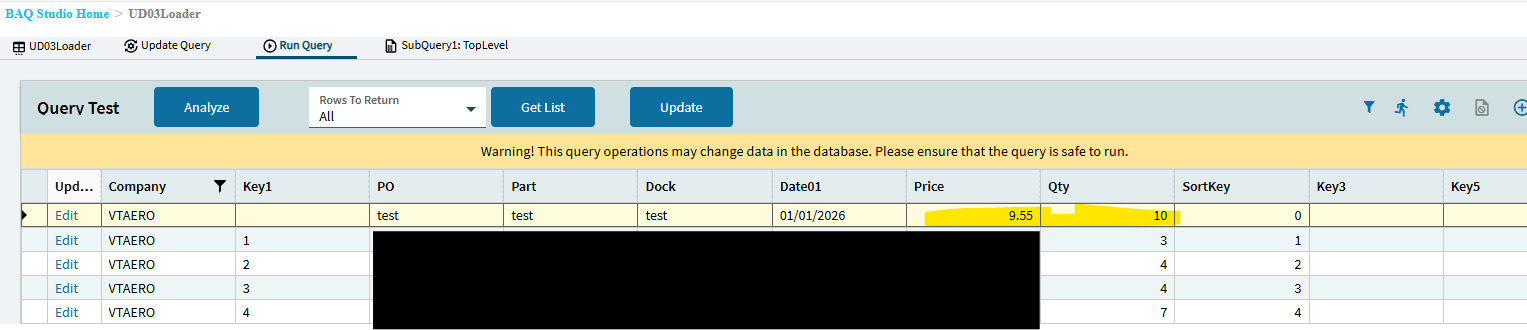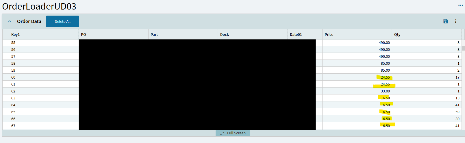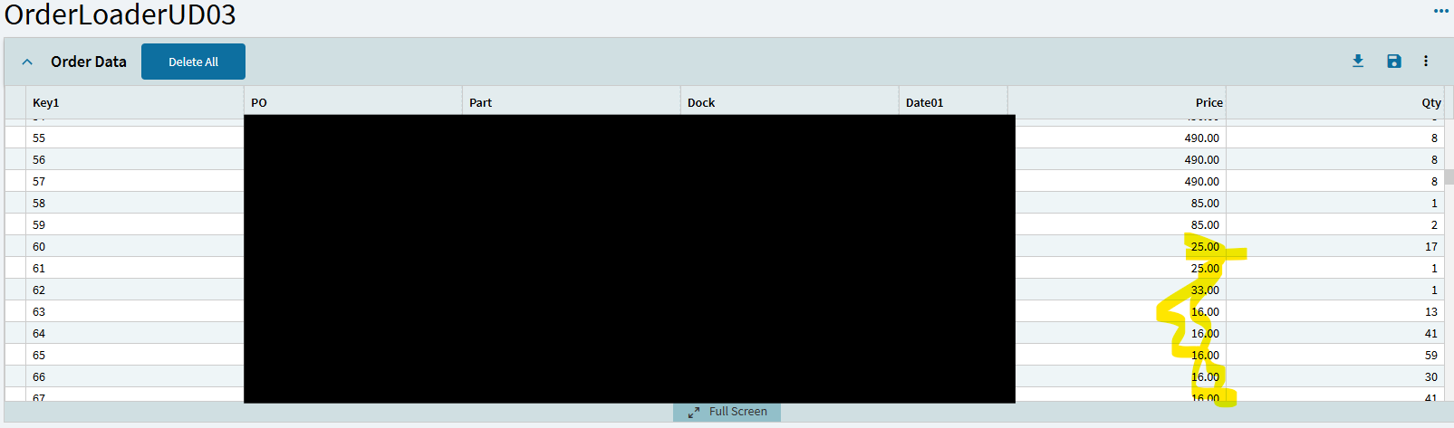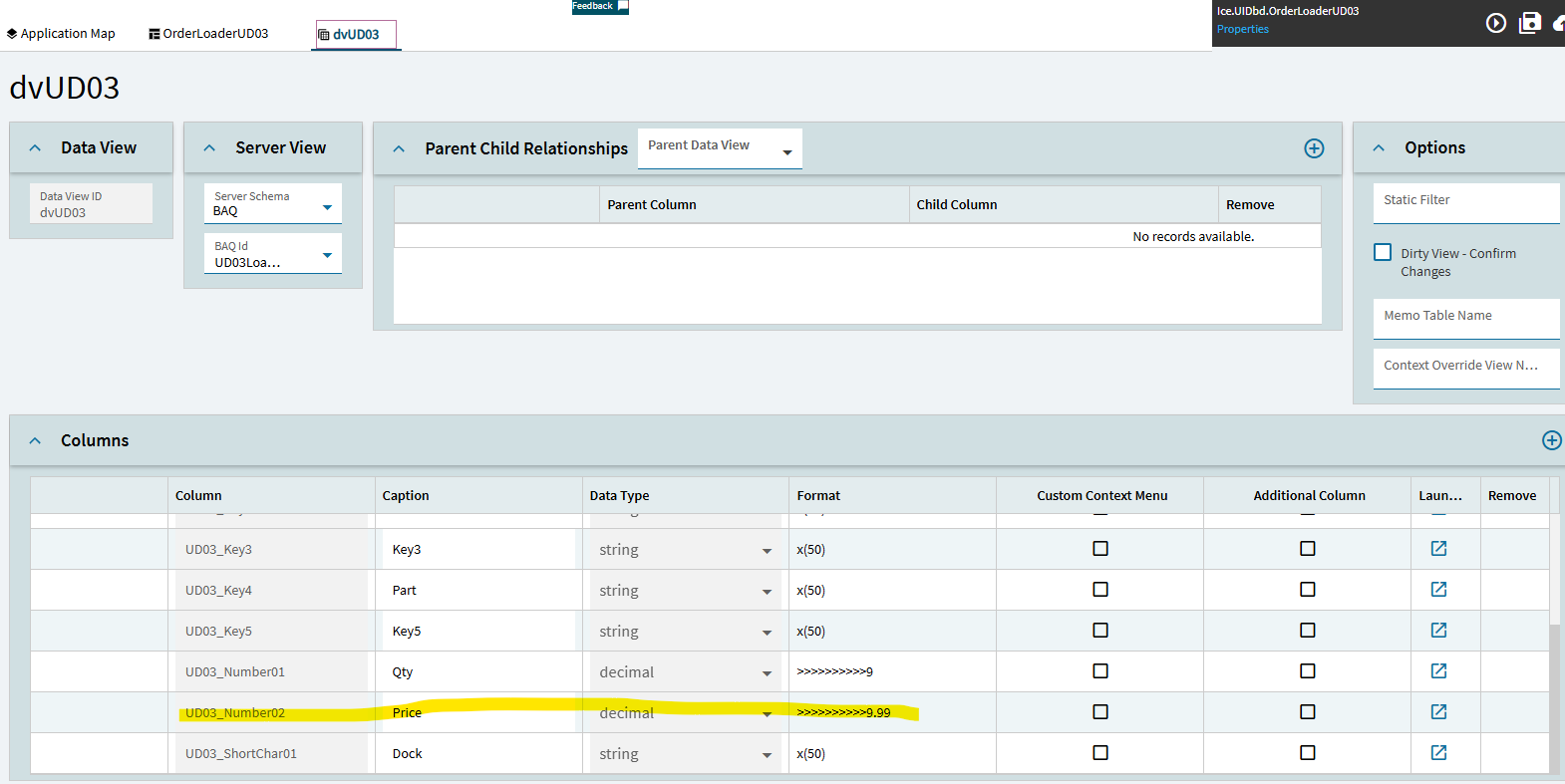 I have a UBAQ that updates UD03. Everything is working as expected, except for one little bug. We paste in values that include decimal places in the price field. This pastes into the dashboard ok, with decimals intact. But, after I click save (using the stock UD03 save method), the decimal places in my price field get rounded up. We can’t figure out where this rounding is happening because the UBAQ doesn’t use a custom update action, just a custom action for DeleteAll. I am not sure what I can show you to prove this.
