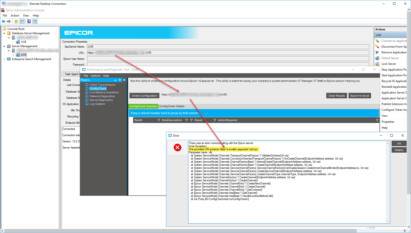 It says it expects a net.tcp, but if I switch it to that, it spins for days (we didn’t deploy net.tcp).