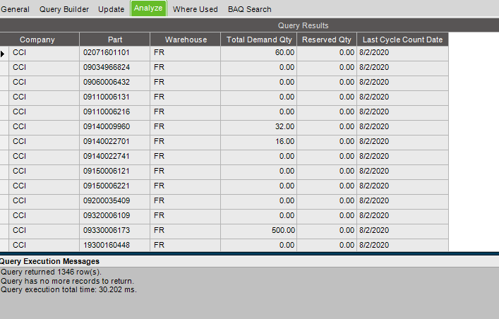 In my experience, even a real physical inventory done in Epicor does not update the LastCCDate field. Maybe that’s a tangent, but something to keep in mind.