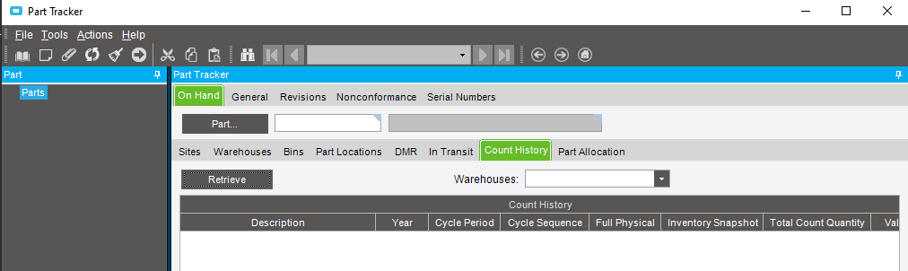 Now you have your on hand quantity after you post your counts being the 10 on hand you had, plus the 10 from the quantity adjustment, so now Epicor thinks you have 20 pieces of Part A in inventory, when you really only have 10 (and you only counted 10).