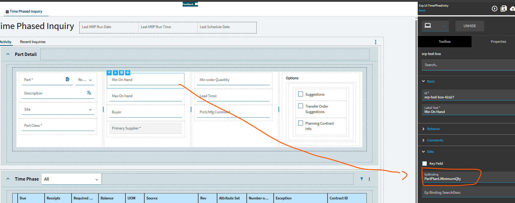 In the Vantage version of time phase the min/max and MOQ were listed in the header of Time Phased Inquiry. Is there anyway to capture this with out having to click on the overly cumbersome Planning Parameters tab? I mean I could really care less about seeing Attribute and Planning Sets.