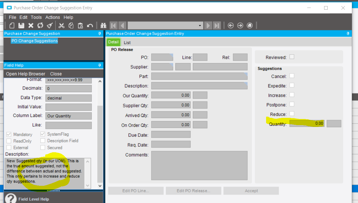 What do they mean by TRUE amount suggested? The amount it needs to increase or decrease or is it the new Release total. So if I had 93 on my PO and the suggestions said increase qty 14. Does that mean I increase it by 14 parts? I totally confused myself.