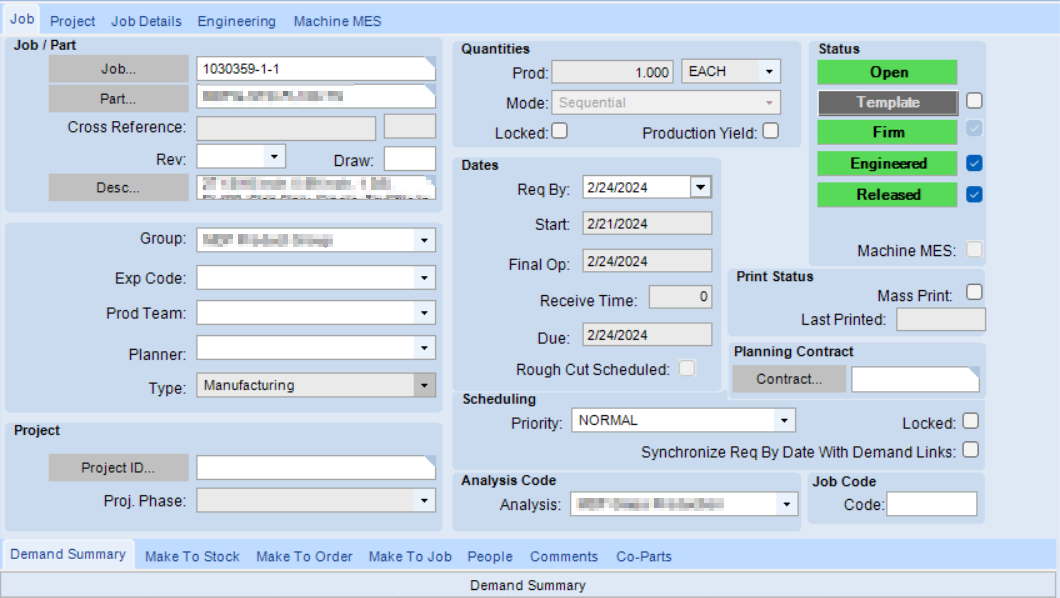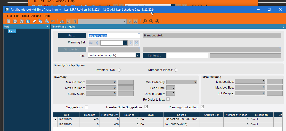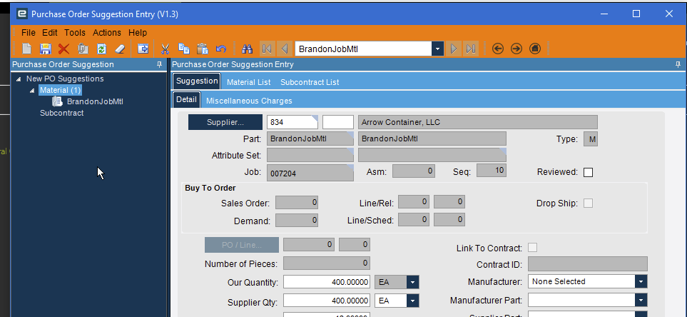 We are completely custom manufacturing so every item we make is different. Because of that, most of the materials on our jobs are not in Part Master. Any of these parts that need to be bought are marked as “Purchased Direct” on the job. Before the update, it had no problems being pulled into PO Suggestions. Since the update I cannot get these to appear.