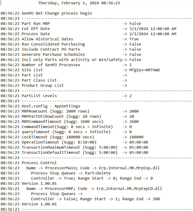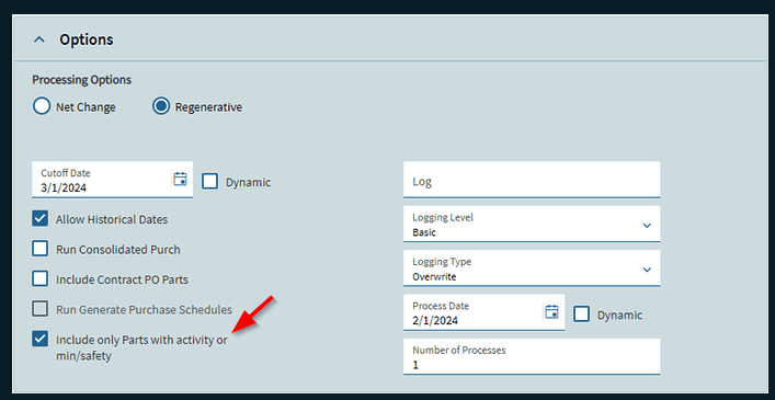 Yeah I have tried toggling that off, running regenerative, net change, etc. The only thing that jumps out is the “Part Run MRP = false”, not sure if that is actually something or not.