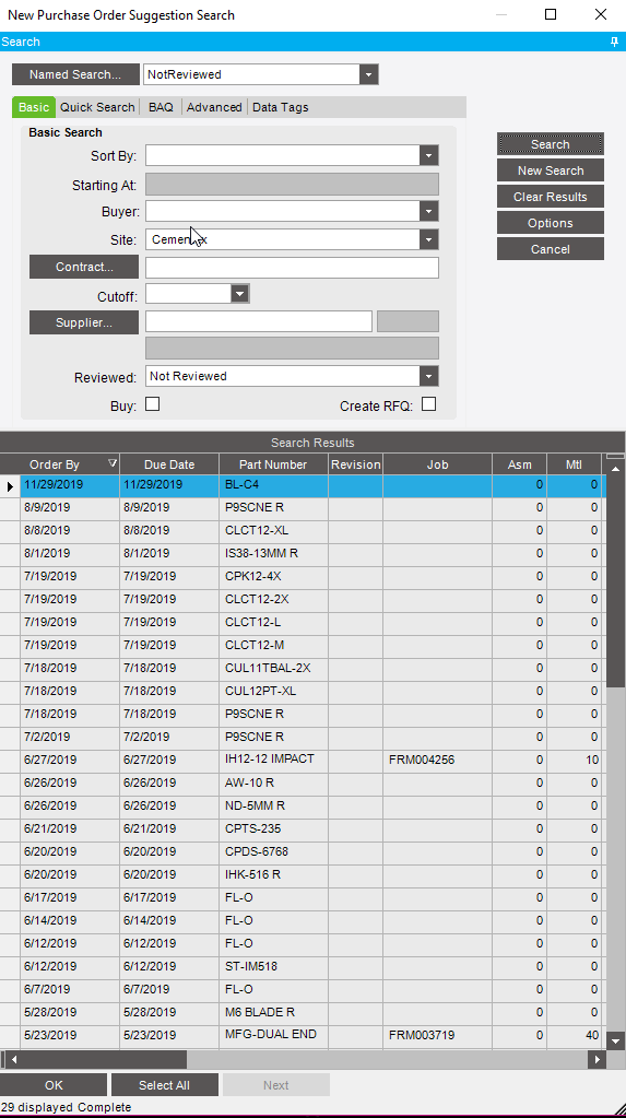 We run PO Suggestions daily at 4:30a as a net change. We have the new PO Suggestion module set as a named search that auto populates when we run it to show only those POs which have been set as Not Reviewed.