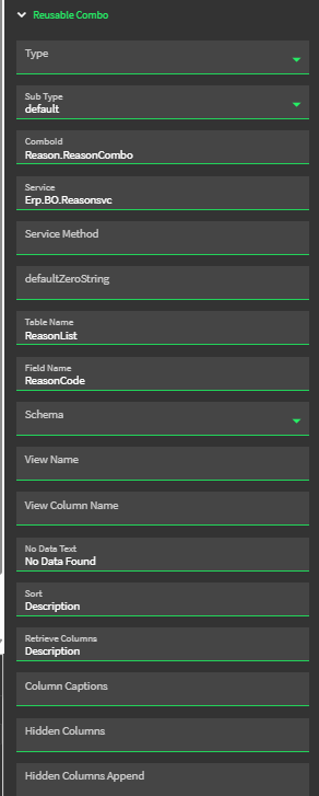 I had issues with a new drop down this morning, noting that the Type drop down isn’t working for me either. I went ahead and copied the proper Type in (Reason.ReasonCombo in your case) and it worked. I first tried going your route manually entering all fields, it wasn’t working…when I pasted the Type in and manually typed default in the SubType, everything populated and worked right away.