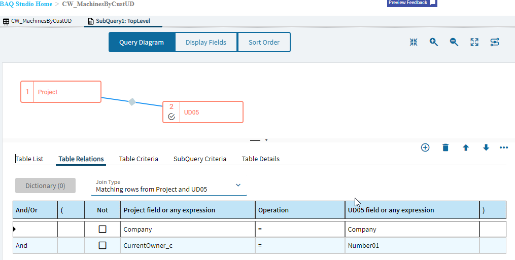 I have a spare UD table, UD05. My first BAQ I am testing it with is to be called from Customer Entry and its derivatives, so I’m want to filter within the BAQ down to a particular customer. Here’s my plan: