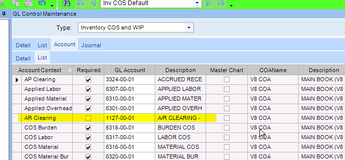 The GL Control Type āInventory COS and WIPā has an override for AR Clearing: