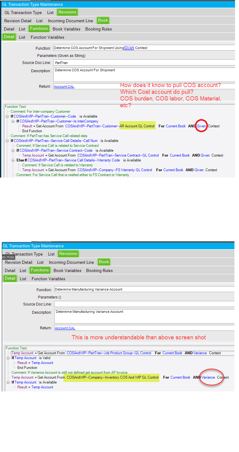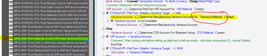 In this case it’s the Post Material Cost rule, and you can see that it passes in “Variance Material” as it’s context.